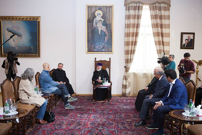 On October 12, in the Mother See of Holy Etchmiadzin, His Holiness Karekin II, Supreme Patriarch and Catholicos of All Armenians; received famous Hollywood actor, director, screenwriter and producer Mr. John Malkovich and his partner Ms. Nicoletta Peyran; who arrived in Armenia to participate the opening ceremony of the 5th Aram Khachaturian International Music Festival. They were accompanied by Mr. Armen Smbatyan, Adviser of the President of the Republic of Armenia on International Cultural and Humanitarian Cooperation and Mr. Sergey Smbatyan, Conductor and artistic director of the State Youth Orchestra of Armenia.