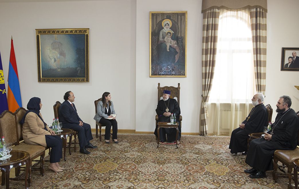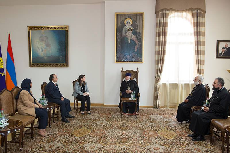 During the meeting, His Holiness stressed that the Armenian-Arabian relations have a century-old history, recording with gratitude the fact that after the Armenian Genocide many Armenians found shelter in Arab countries. The Catholicos of All Armenians reflected with gratitude on the current cooperation between the two countries.