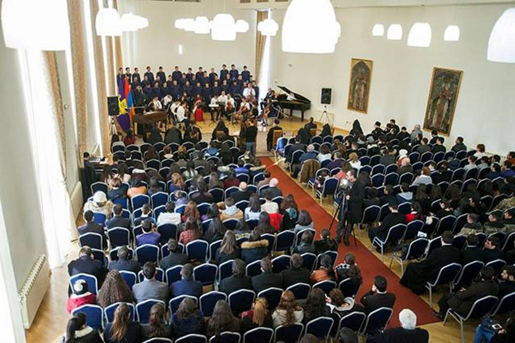 Mr. Vahe Torosyan, a Gevorgyan Theological Seminary professor and candidate of historical sciences, gave a lecture on the heroic deeds of the valiant commanders. During the event, students from the Gevorkian Theological Seminary, Yerevan State University and Komitas State Conservatory performed spiritual and patriotic songs and poetry, dedicated to the mystery of the Vartanants.