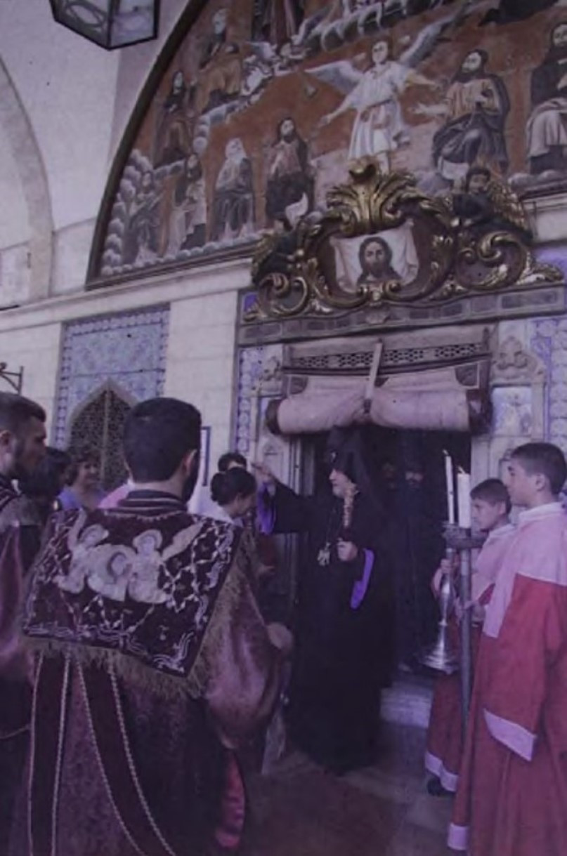 Following the Pontifical Divine Liturgy, the pilgrims toured the city to get acquainted with historical Jerusalem. From the St. James Mother Cathedral the procession led by the Supreme Patriarch went to the Holy Resurrection Cathedral. Here the pilgrims knelt before the place where the body of Jesus was wrapped with linen and where Joseph of Arimathea anointed the body of Jesus, after it had been taken off the cross. In memory of this anointing, the site is continuously sprinkled with rose oil. This same rite was also conducted by the Armenian pilgrims. From there, they went to the Lord's tomb where, following the ceremony held under the presidency of the Supreme Patriarch, they knelt and kissed the empty tomb. The pilgrims also visited the Passion Site under the Holy Resurrection Cathedral, the Chapel-Altars of Sacred Garden, Patriarch Lukianus, Distribution of Raiments (garments), Discovery of the Cross, Illuminator, Crown of Thorns, Josef of Arimathaea, and of Holy Mother of God's fainting as well as Holy Golgotha; they lived moments of pride for the significant Armenian presence in these Christian Shrines.