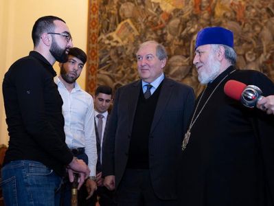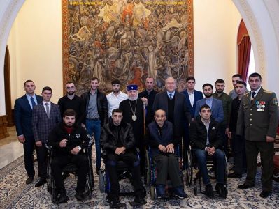 On December 19, His Holiness Karekin II, Supreme Patriarch and Catholicos of All Armenians; received the 15 Armenian sons injured in Nagorno-Karabakh War and during their service on the borders. They visited the Mother See of Holy Etchmiadzin led  by Mr. Armen Sargsyan, President of the Republic of Armenia.