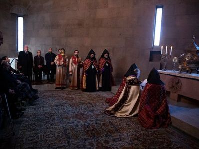 Following the meeting, under the presidency of the Catholicos of All Armenians; and in the presence of the RA President and injured soldiers; a Prayer for the Republic was offered at the St. Vartan and St. Hovhannes Chapel-Baptistry of the Mother See. At the ceremony, a prayer was offered to God for peace and steadiness of the Fatherland and the victorious path of the Armenian Army.