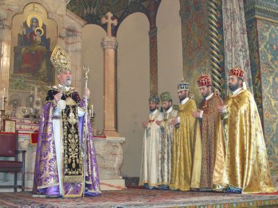 On Sunday, November 23, His Eminence Archbishop Davit Sahakian celebrated a "Divine Liturgy of Oath" in the Mother See of Holy Etchmiadzin dedicated the 1700th Anniversary of the consecration of the First Church of the Armenian People. His Holiness Karekin II, Supreme Patriarch and Catholicos of All Armenians, presided during the Divine Liturgy as the celebrant archbishop ordained five deacons to the holy order of priesthood.