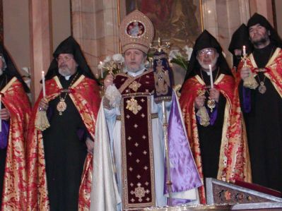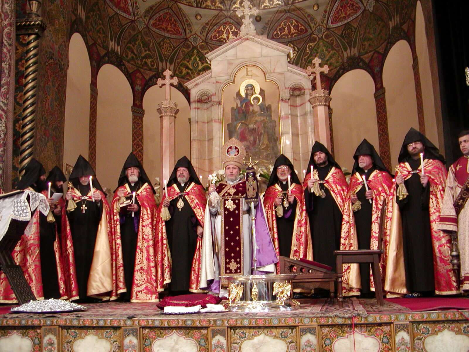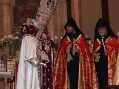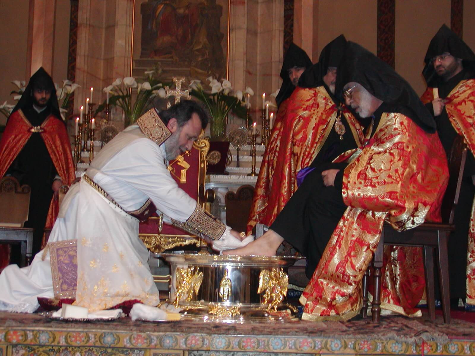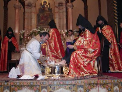 On Holy Thursday, April 17, the major services of Holy Week commenced in the Mother See of Holy Etchmiadzin. The three services on Holy Thursday commemorate the Last Supper of Jesus Christ, the Savior's display of humility in washing the feet of his disciples, and the establishment of the Sacrament of Holy Communion.