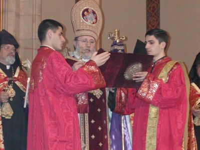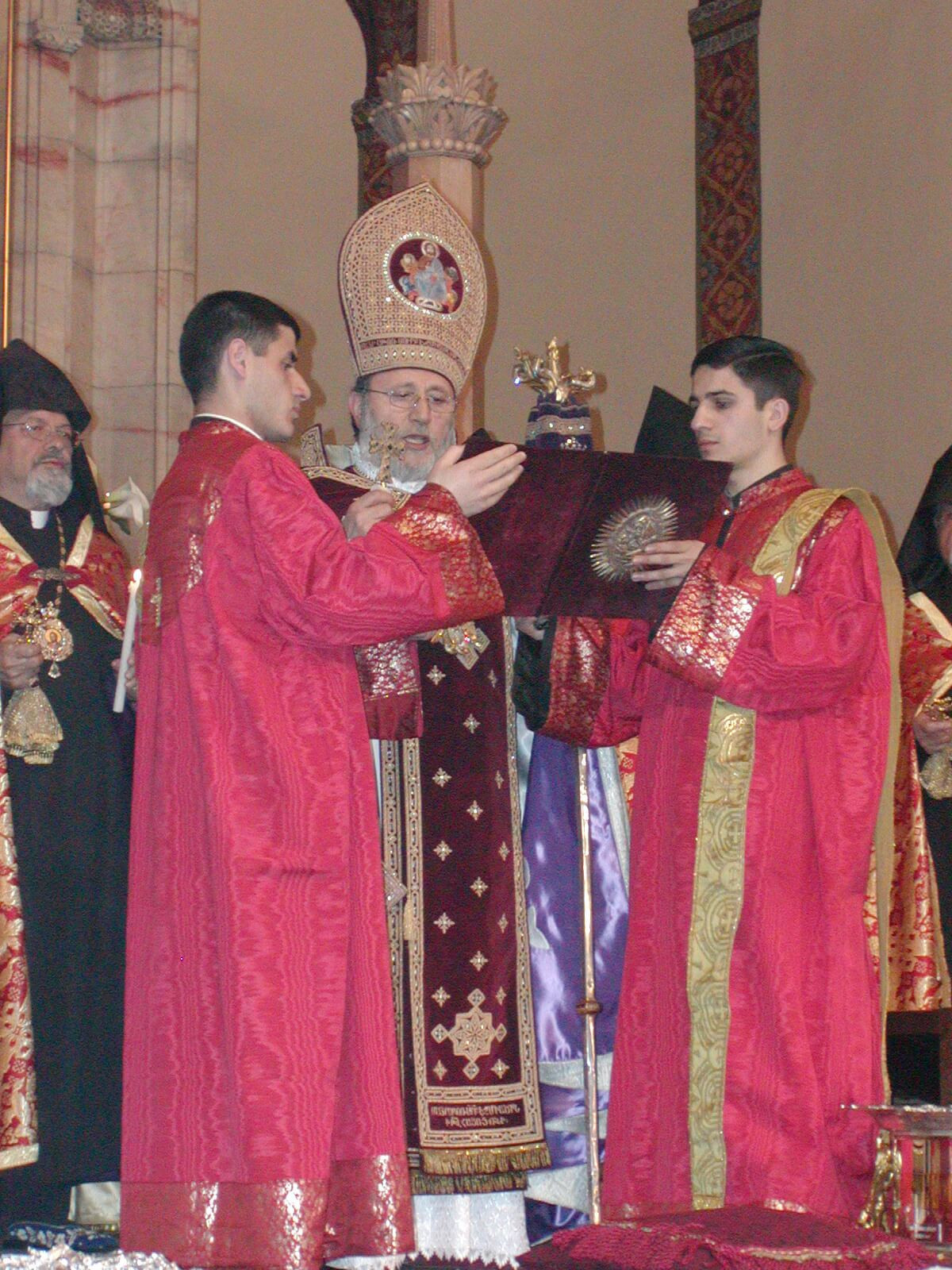 In the morning, in commemoration of the Last Supper and establishment of the Sacrament of Holy Communion, Divine Liturgy was celebrated in the Mother Cathedral. During the Liturgy, hundreds of faithful received Holy Communion. The celebrant was Rev. Fr. Koriun Arakelian, who having just completed his forty-day period of preparation, celebrated his inaugural Divine Liturgy.