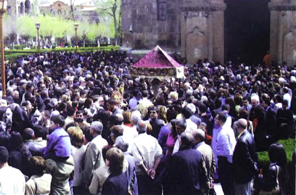 The Mother Cathedral of All Armenians was filled to capacity, and the overflowing crowd in the courtyard of the Mother See heard the message of the Pontiff, as he declared: "Christ is Risen from the dead! Blessed is the Resurrection of Christ."