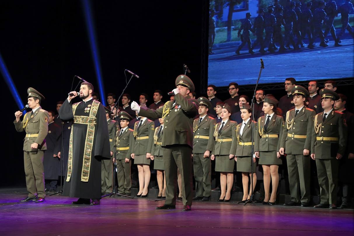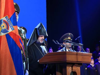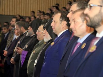 The solemn ceremony began with the RA National Anthem, following which the Lord's Prayer was performed by the choir of the Gevorkian Theological Seminary. His Grace Bishop Vrtanes Abrahamyan, Spiritual Primate of the RA Armed Forces made welcoming remarks.