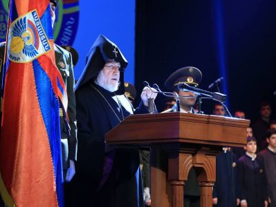 Along with assuming a mission in our national-ecclesiastical life, the clergy and graduate deacons of the Gevorkian Theological Seminary are obliged to serve in the Army, conveying spiritual consolation and encouragement to our soldiers, strengthening their faith, keeping their fighting spirit, and being their supporter in the cherished homeland defense. It pleases me as the Patriarch to record that more than three hundred spiritual servants have served in the Armenian army till now. Indeed, during the quarter century of our independent statehood, the Army Chaplaincy was most important and fruitful in the army, where the cooperation of the National Authorities and Armenian Church provided an abundant harvest, and other seeds fell into good soil and produced grain, growing up and increasing and yielding thirtyfold and sixtyfold and a hundredfold (cf. Mark 4:8).