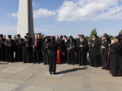 On September 28, with the blessings of His Holiness Karekin II, Supreme Patriarch and Catholicos of All Armenians; on the occasion of the re-consecration ceremonies of the Mother Cathedral and Blessing of the Holy Muron, the delegations and representatives of Christian Churches and inter-church structures, bishops serving in the Mother See, diocesan primates of the Armenian Church visited the Tsitsernakaberd memorial complex.