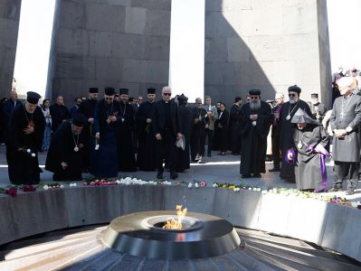 After placing a wreath in front of the monument of the Great Genocide, under the chairmanship of His Eminence Archbishop Vicken Aikazian, member of the Brotherhood of the Mother See, the intercession order of the holy martyrs of the Armenian Genocide was performed.