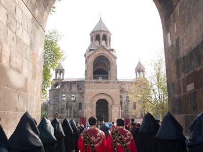 For the pilgrims coming to the Mother See of Holy Etchmiadzin, the Christ-bearing Holy Lance of Geghard was taken out as a sign of the terrible sufferings and victorious Resurrection of our Lord and Savior Jesus Christ.