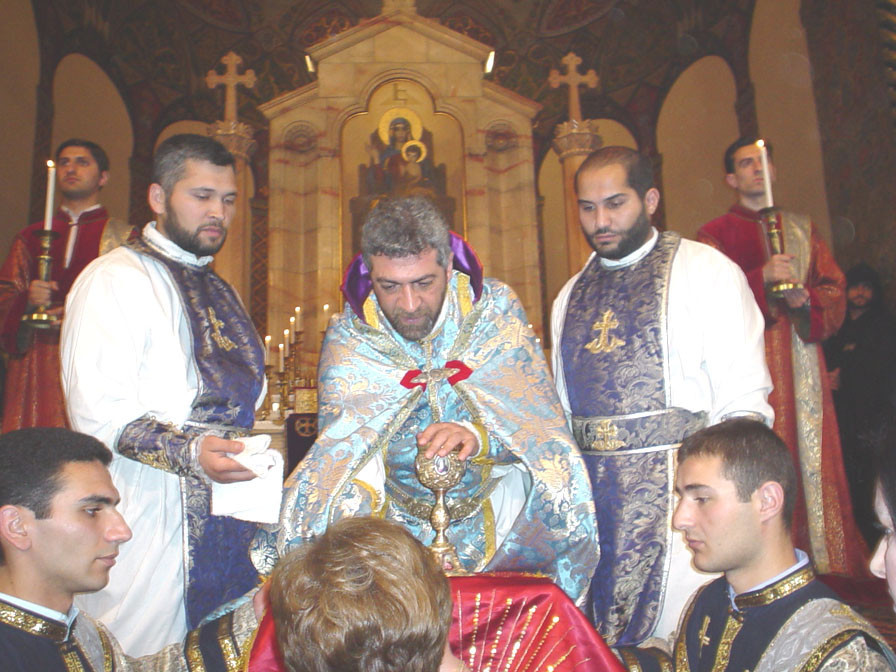 On Sunday June 1, the largest Armenian Church diocese in the world, the Araratian Pontifical Diocese, celebrated their "Divine Liturgy of Oath" in the Mother See of Holy Etchmiadzin. His Holiness Karekin II, Supreme Patriarch and Catholicos of All Armenians, has declared 2003 to be the Year of Holy Etchmiadzin, as the worldwide church is celebrating the 1,700 Anniversary of the Consecration of the Mother Cathedral of the Armenian People. This year, every diocese is conducting a pilgrimage to the place where Christ descended, to participate in the celebration of a "Divine Liturgy of Oath".