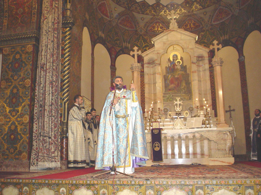 Very Rev. Fr. Arshak Khatchatrian, Chancellor of the Mother See, welcomed the pilgrims on behalf of the Pontiff of All Armenians, prior to His Grace's sermon. In his message to the faithful, His Grace said, "With this oath, we will transfer new breath and spirit to the well of our faith - the strength bestowed from God, Christianity. At this moment, we again hear within ourselves the eternal invitation: 'Come and build the Holy Altar of Light.' . . . We have been brought here by the patriotic and church-loving oaths we inherited from our forebears. Today, with renewed faith, each of us added to the oil in the Lamp of the Illuminator, which has been fermented with the tears of our saints. We were baptized once again with the light of the Enlightener, and in our souls we lit the redeeming flame."