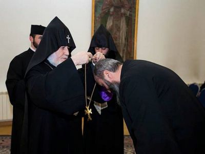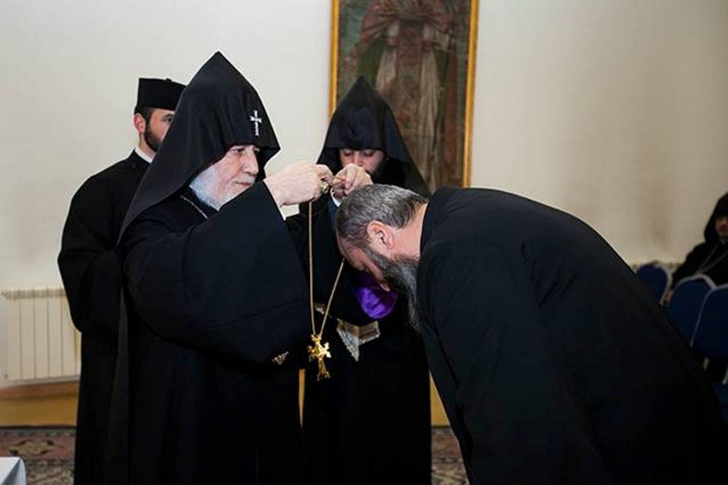 The right to wear the Pectoral Cross was granted to Rev. Fr. Tadeos Tadevosyan and Rev. Fr. Teodik Chetingaryan from the Mother See of Holy Etchmiadzin; Rev. Fr. Hovakim Harutyunyan (Araratian Pontifical Diocese); Rev. Fr. Oshin Hayrapetyan (Diocese of Aragatsotn); Rev. Fr. Tachat Injighulyan (Diocese of Armavir); Rev. Fr. Hamazasp Grigoryan (Diocese of Kotayk); Rev. Fr. Taron Hunanyan (Diocese of Gegharkunik); Rev. Fr. Atom Asatryan, Rev. Fr. Ovse Hovhannisyan and Rev. Fr. Ghazar Torosyan (Diocese of Gougark); Rev. Fr. Ghevond Topashyan and Rev. Fr. Torgom Vardanyan (Armenian Diocese of Georgia); Rev. Fr. Abel Kartashyan (Diocese of Tavoush); Rev. Fr. Abgar Margaryan (Diocese of Artik) and Rev. Fr. Poghos Michaelyan (Diocese of Bulgaria).