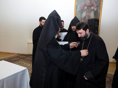 On February 21, the Armenian Apostolic Holy Church celebrated the Feast of St. Ghevond the Priest. On this occasion under the presidency of His Holiness Karekin II, Supreme Patriarch and Catholiocs of All Armenians; an awards ceremony was held for the priests serving in the Dioceses and Armenian Church institutions. The event was attended by diocesan primates, members of the Brotherhood of the Mother See and 230 priests from the dioceses. The ceremony was held in the Events Auditorium of the Gevorkian Theological Seminary of the Mother See of Holy Etchmiadzin.