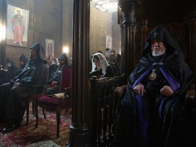 On April 6, in the evening, under the chairmanship of His Holiness Karekin II, Supreme Patriarch and Catholicos of All Armenians; a Betrayal Service was held in the St. Gayane Monastery, which refers to Good Friday, symbolizing the crucifixion and burial of our Lord Jesus Christ.