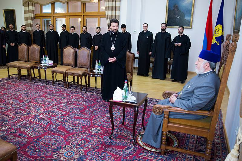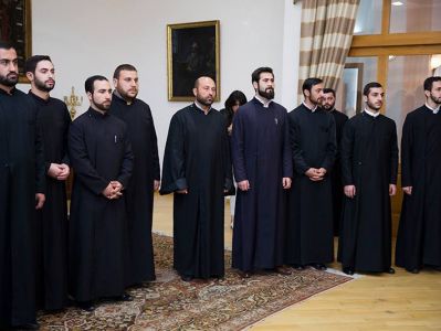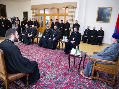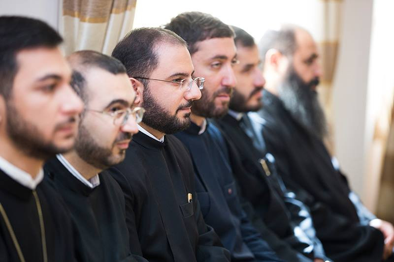 His Holiness expressed his gratitude for the warm words and congratulations, conveying his Pontifical blessing and appreciation to the attendees. The Catholicos of All Armenians noted with joy that thanks to the diligent and united service of the clergy over the past several years, the Armenian Church has recorded numerous successes in the spiritual life and different fields. On this occasion, His Holiness urged the clergymen to continue their service towards the Church and to the faithful people with zeal and dedication.
