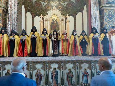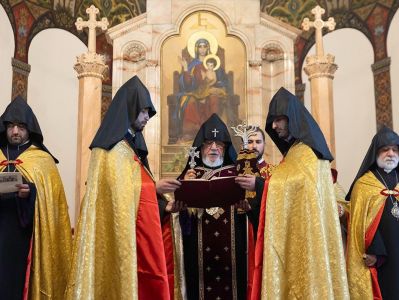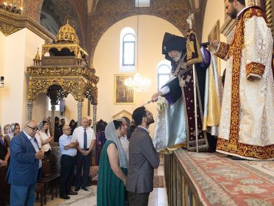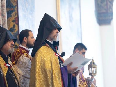 On August 31, at the Mother Cathedral of Holy Etchmiadzin, the Divine Liturgy was celebrated under the presidency of His Holiness Karekin II, Supreme Patriarch and Catholicos of All Armenians. The celebrant was the Very Reverend Father Proto-Archimandrite Zakaria Baghumyan, Director of the Christian Education Center of the Mother See of Holy Etchmiadzin.