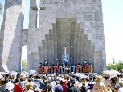 His Holiness Karekin II, Supreme Patriarch and Catholicos of All Armenians presided during the solemn Liturgy, as thousands of faithful pilgrims from throughout Armenia and the Diaspora prayed and worshipped together, offering their thanks and praise to God for this blessed day. In his sermon, His Grace Bishop Paren noted the significant events throughout history which forever tied the Cathedral of Holy Etchmiadzin and the Catholicosate of All Armenians with the Armenian Nation and all of her people throughout the world. His Grace noted the establishment of the Mother See by the hands of St. Gregory and King Trdat in 301, the consecration of the Mother Cathedral in 303, the return of the Pontificate of All Armenians to Etchmiadzin in 1441, and the 1700th Anniversary of the Great Conversion of the Armenians which was celebrated in a free and independent Armenia for the first time in centuries in 2001.
