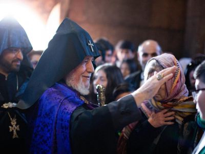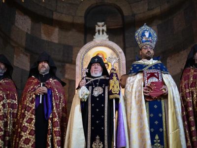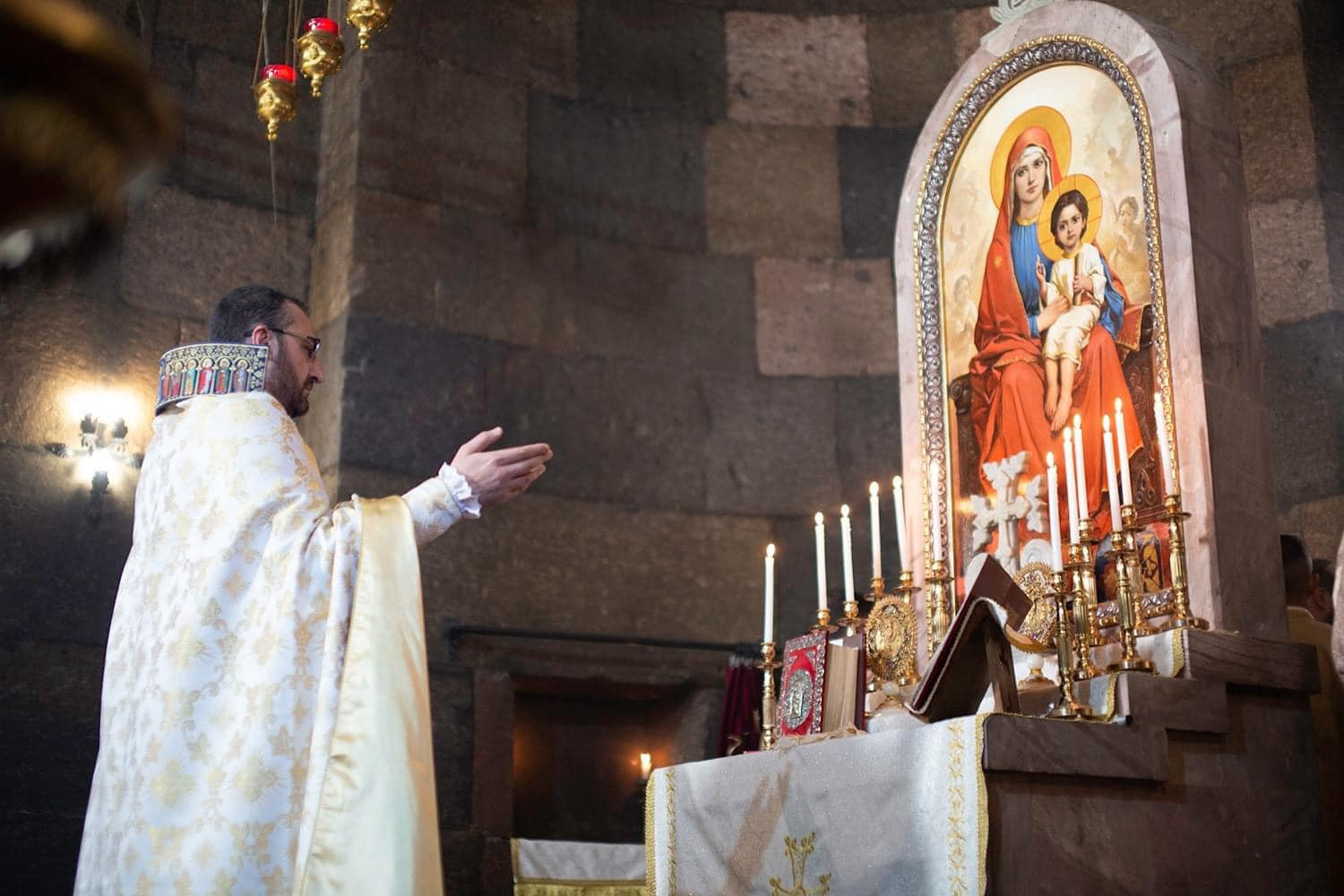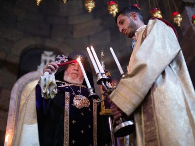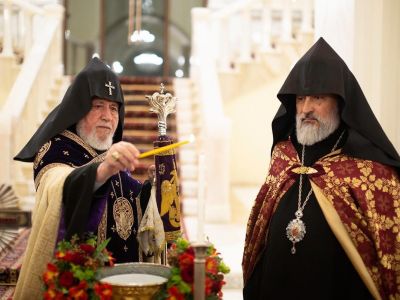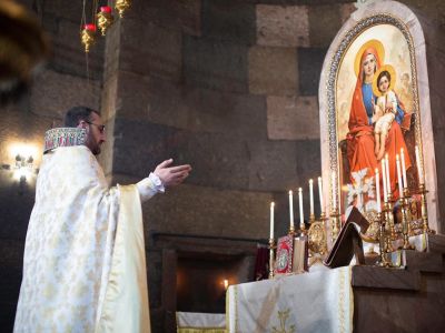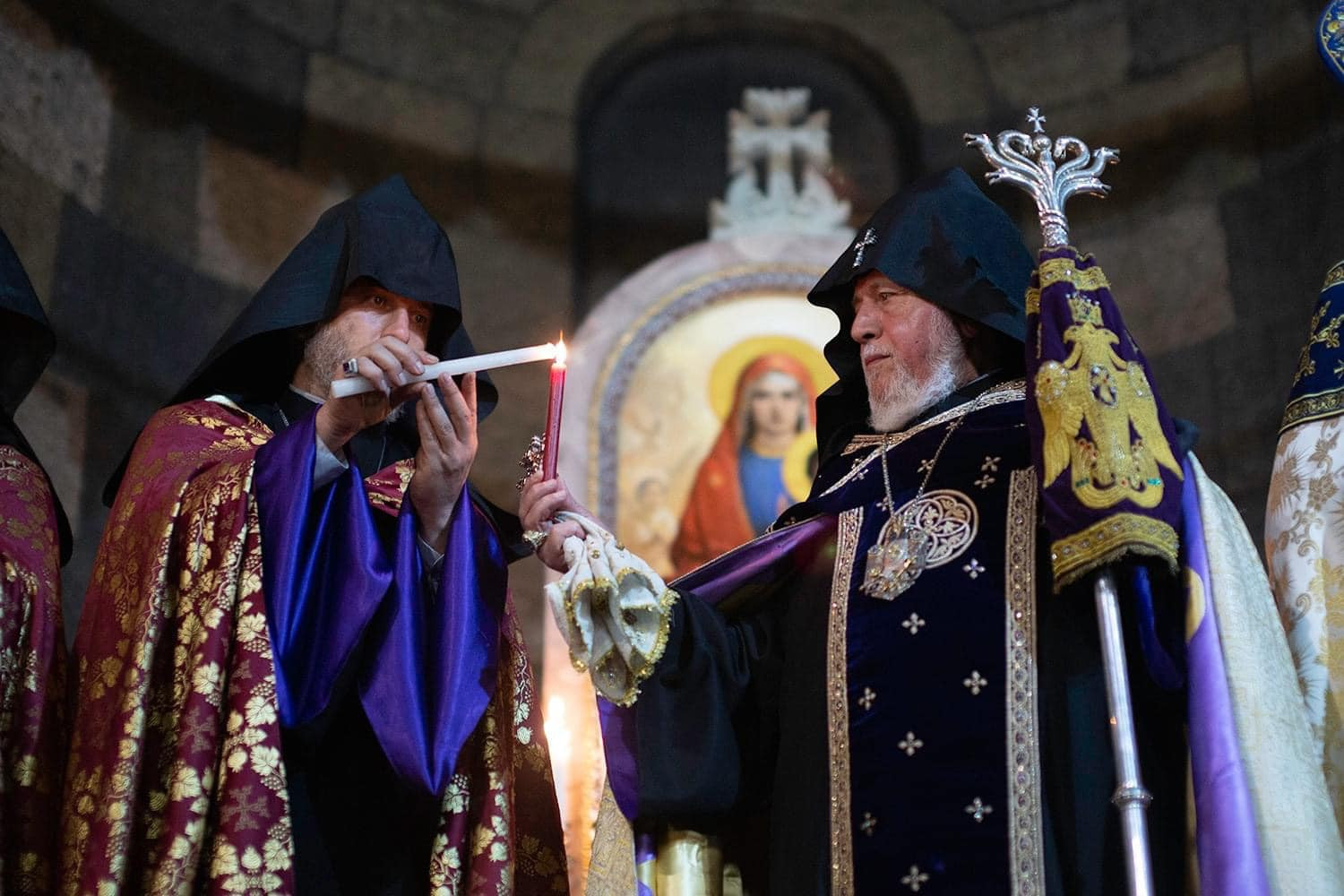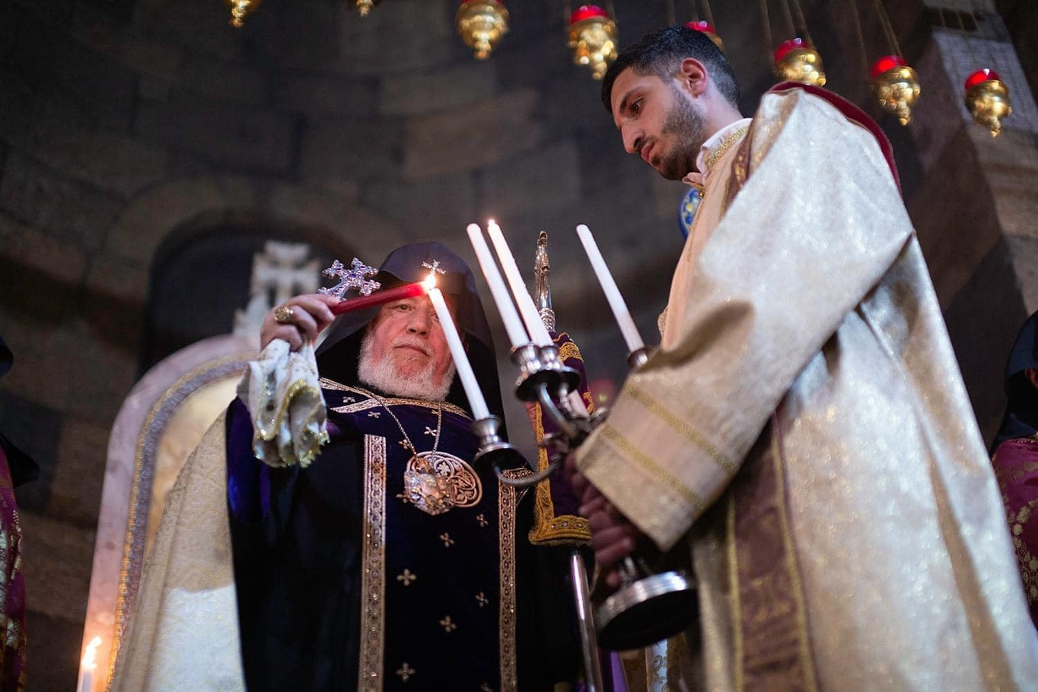 At the conclusion of the Divine Liturgy, the Catholicos of All Armenians ascended the Holy Altar and lit a candle, symbolizing the light of Christ.