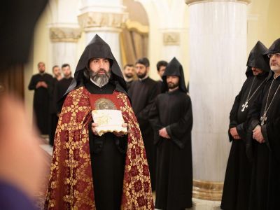 On April 8, Holy Saturday, the eve of the Glorious Resurrection of our Lord Jesus Christ; the Brotherhood of the Mother See, under the presidency of His Holiness Karekin II, Supreme Patriarch and Catholicos of All Armenians; participated in the Candlelight Divine Liturgy in St. Gayane Monastery. The Celebrant was His Eminence Archbishop Arshak Khachatryan, Chancellor of the Mother See of Holy Etchmiadzin.