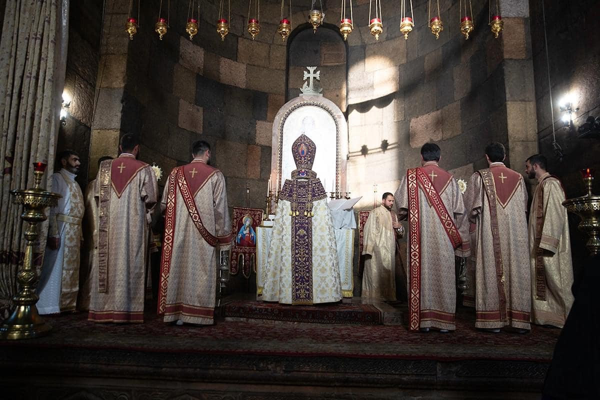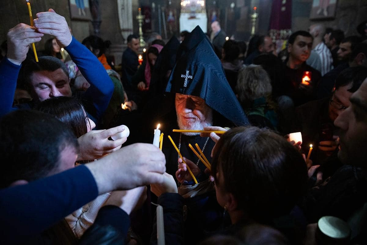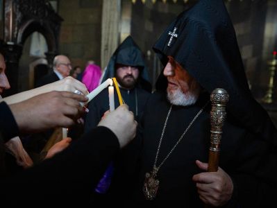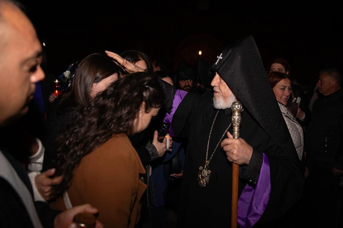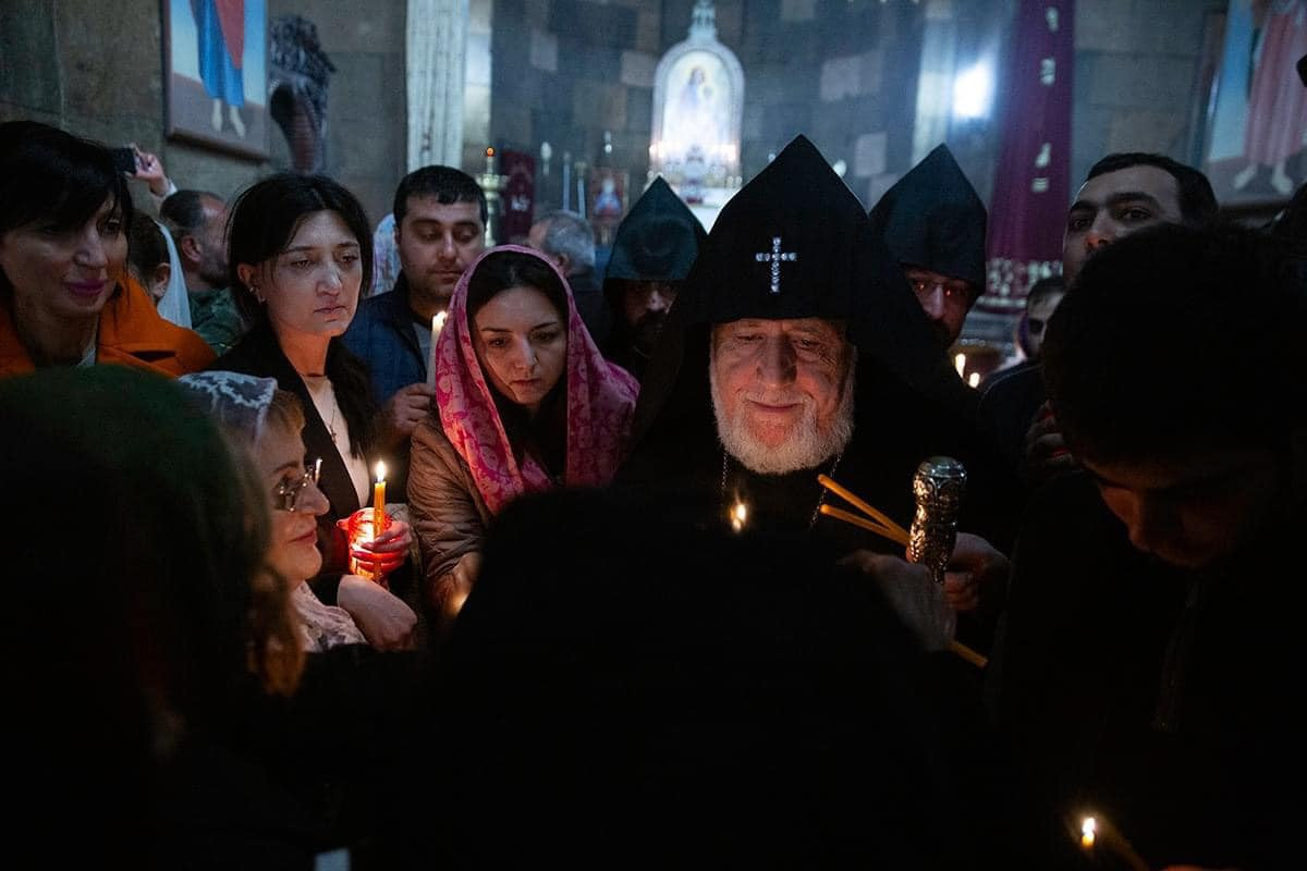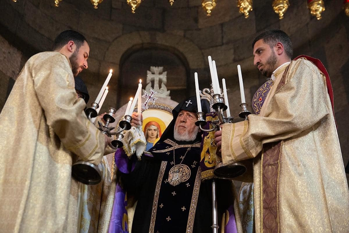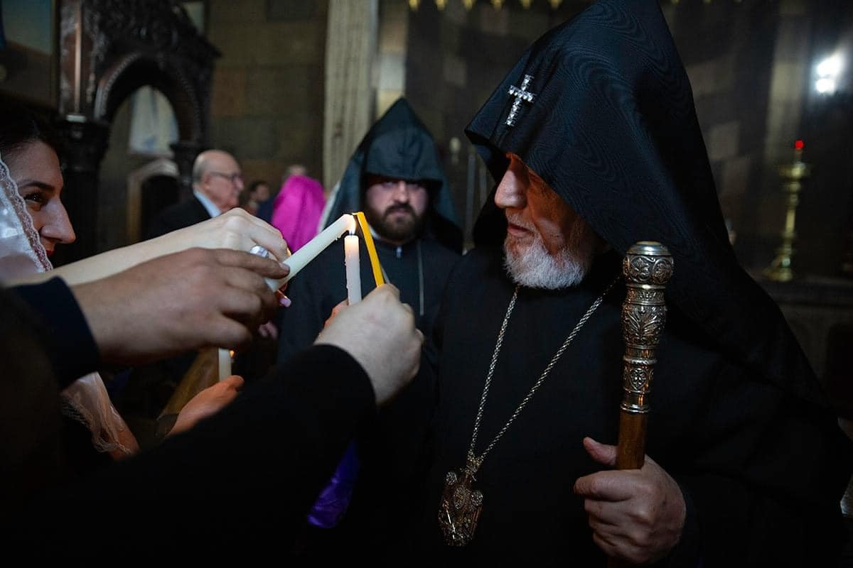 At the conclusion of the Divine Liturgy, the Catholicos of All Armenians ascended the Holy Altar and lit a candle, symbolizing the light of Christ, which was distributed to the believers.