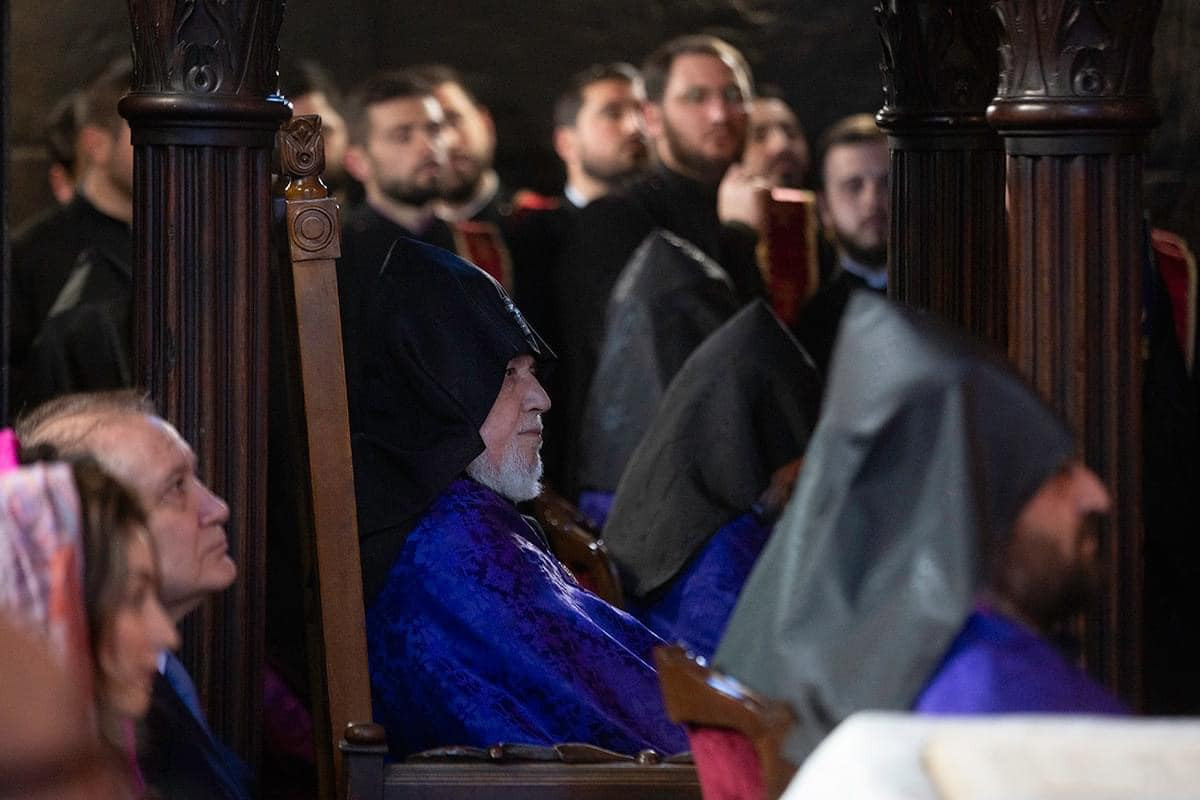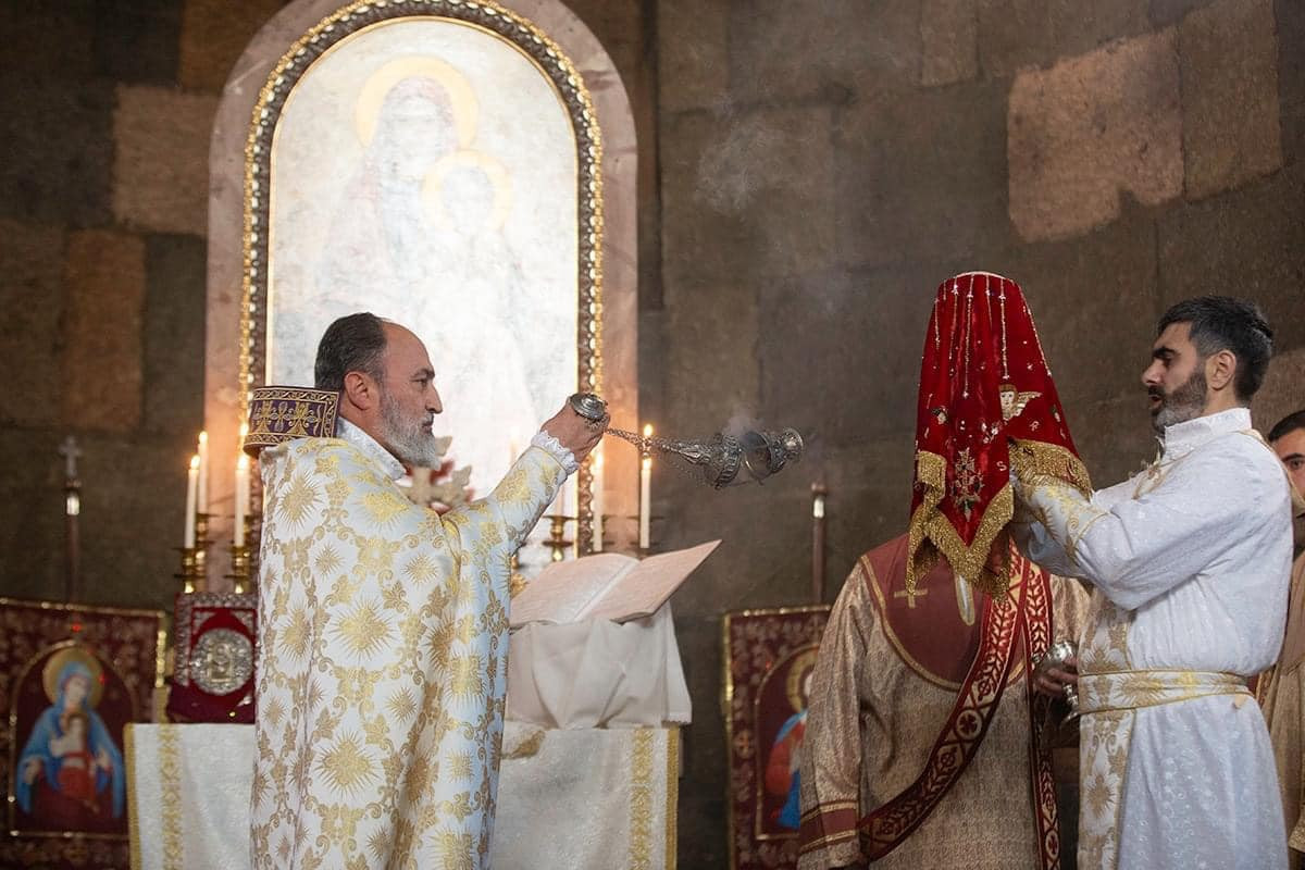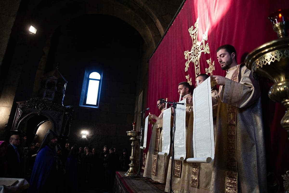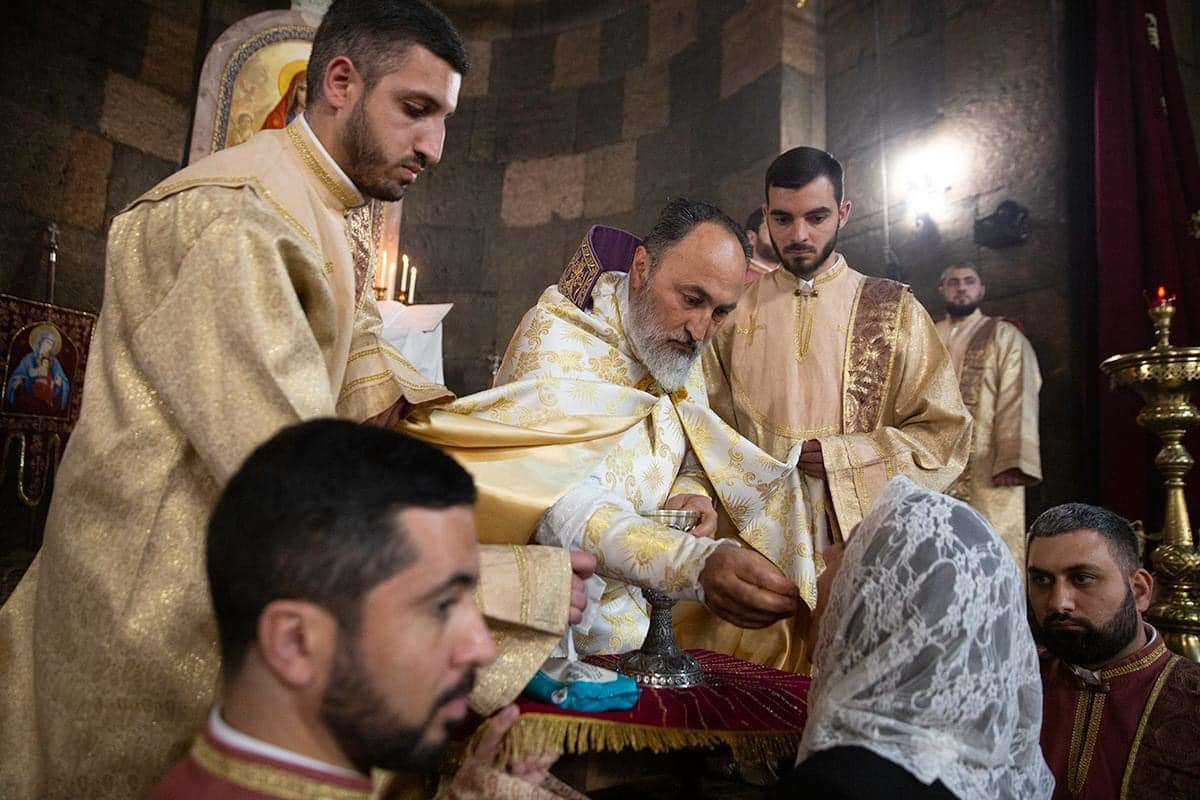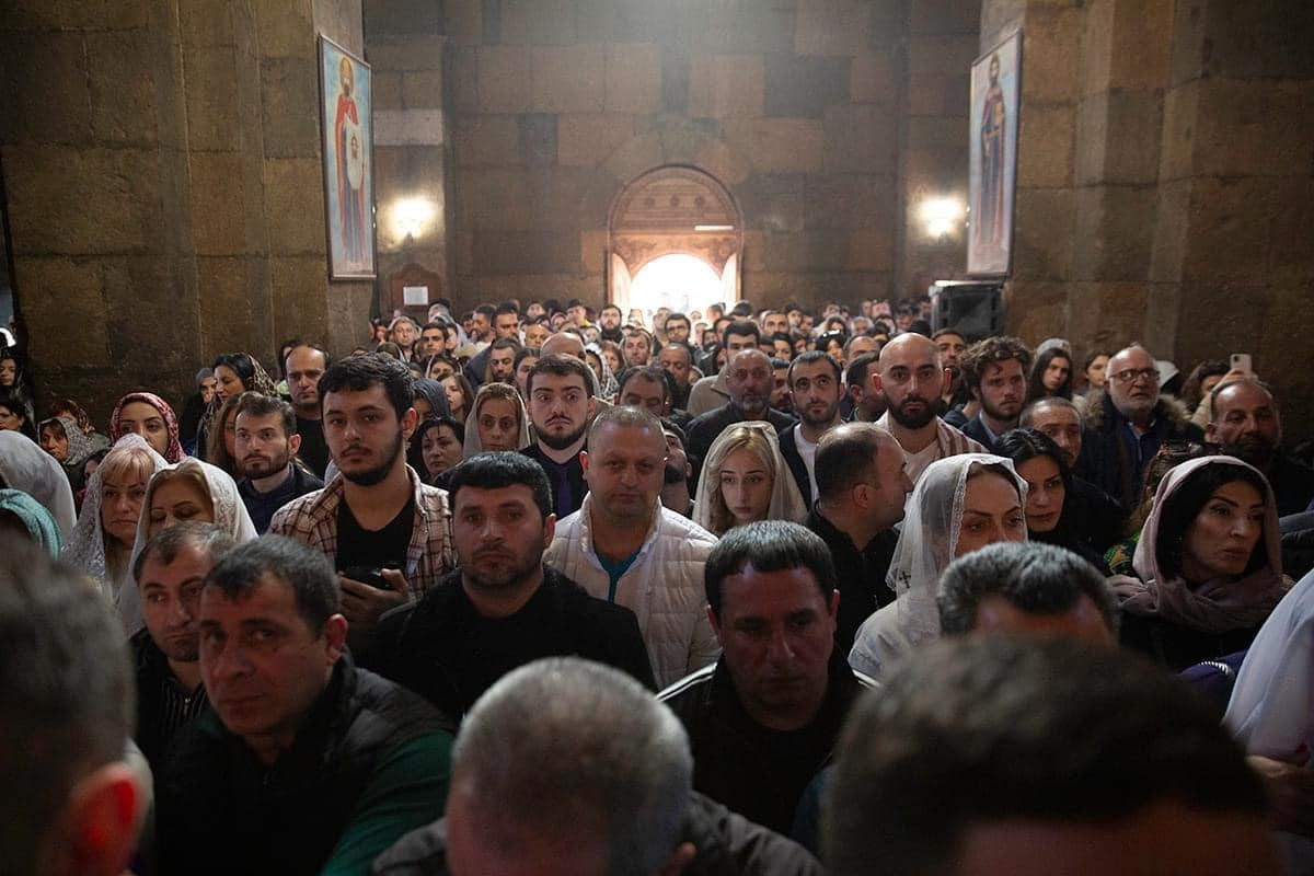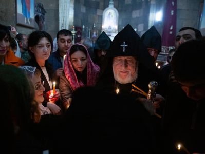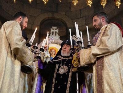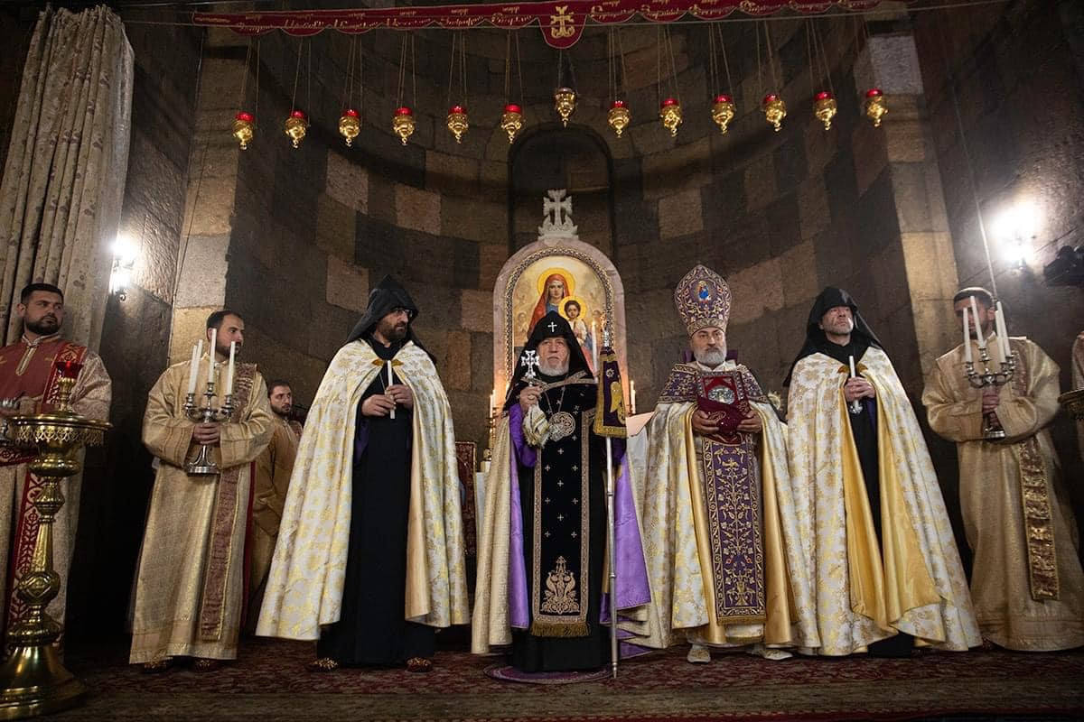 At the conclusion of the Divine Liturgy, the Catholicos of All Armenians ascended the Holy Altar and lit a candle, symbolizing the light of Christ, which was distributed to the believers.