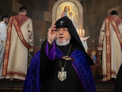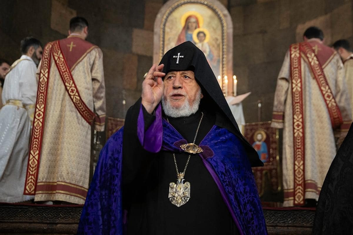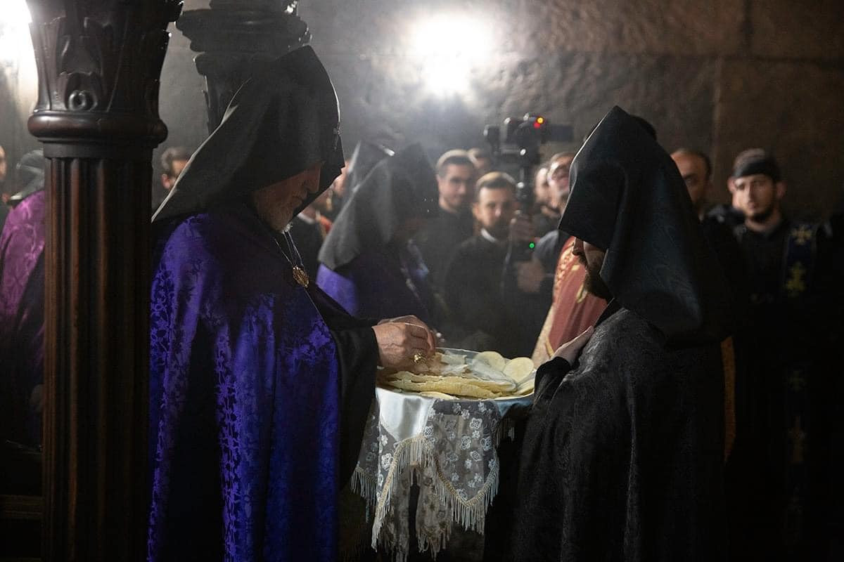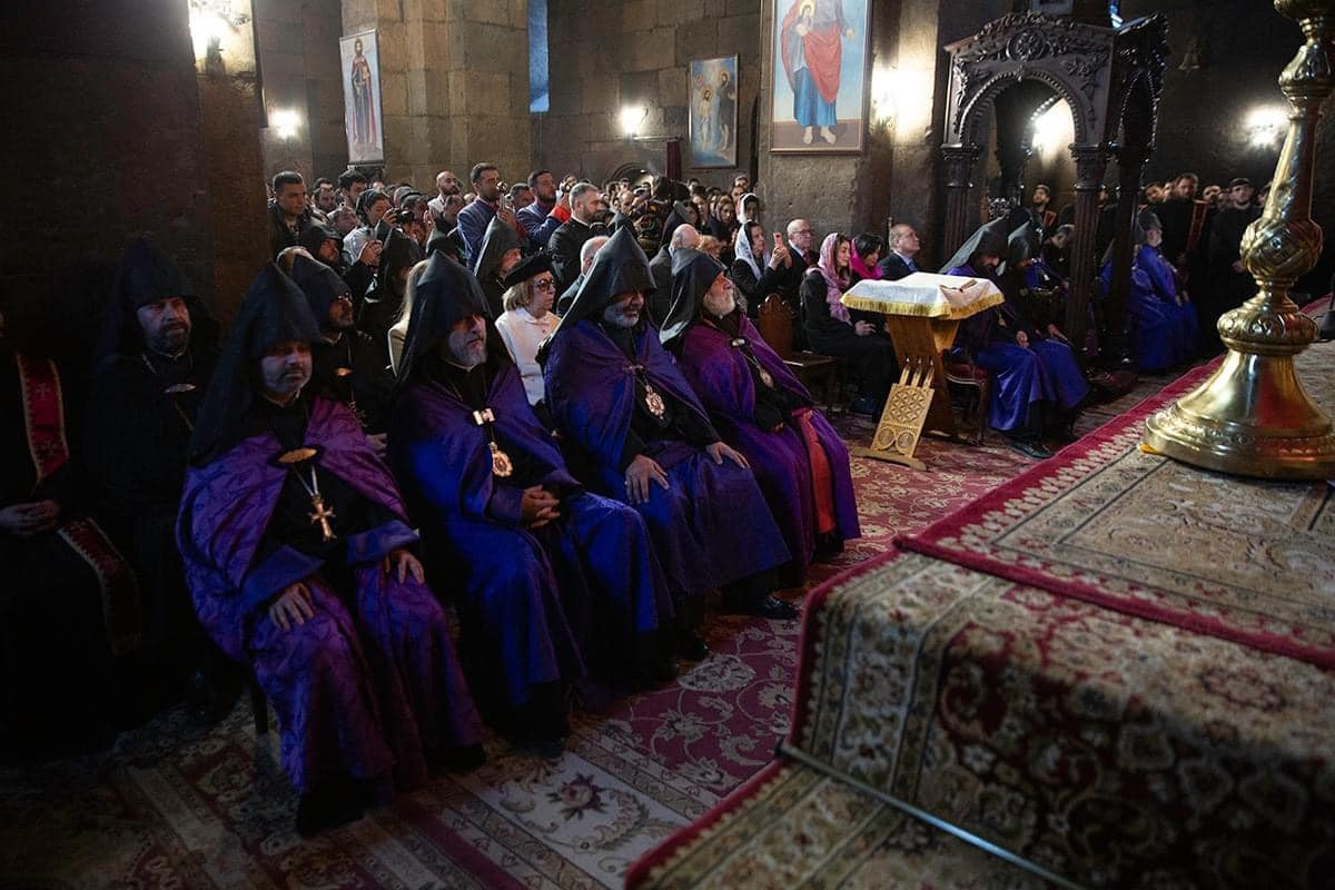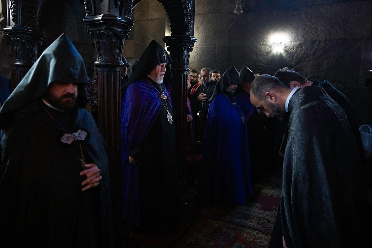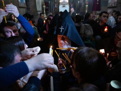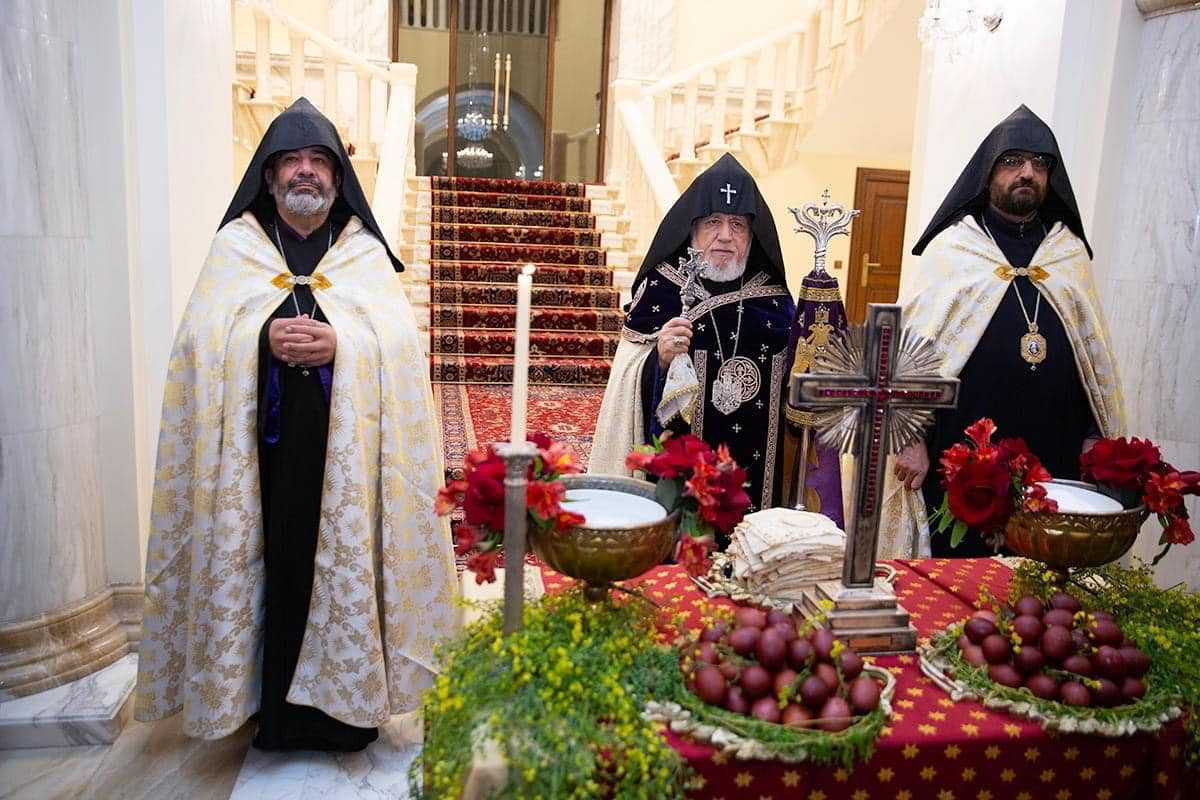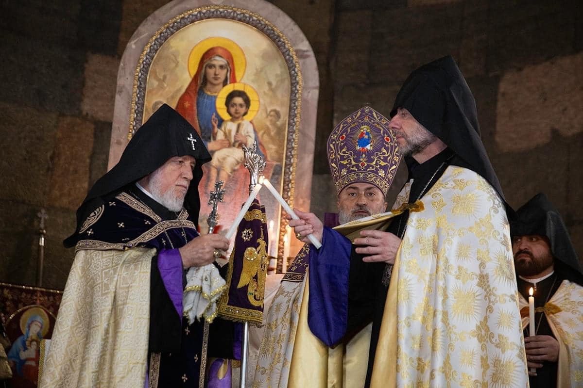At the conclusion of the Divine Liturgy, the Catholicos of All Armenians ascended the Holy Altar and lit a candle, symbolizing the light of Christ, which was distributed to the believers.