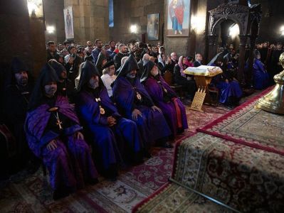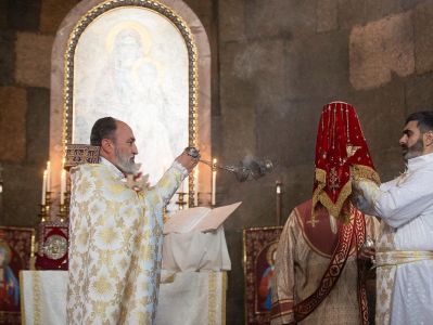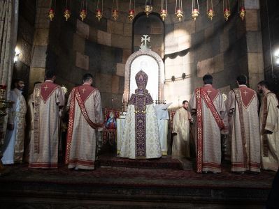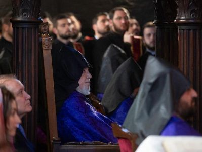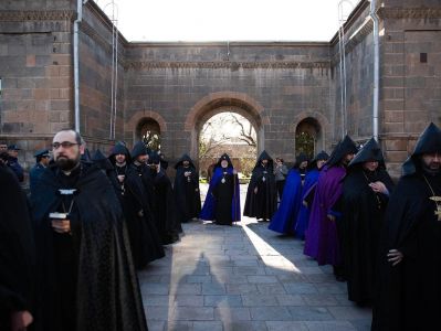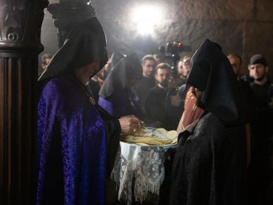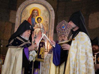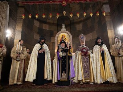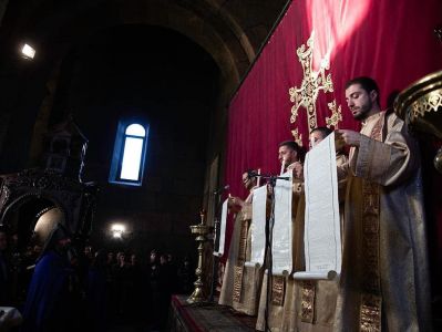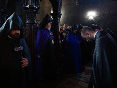 On March 30, Holy Saturday, the eve of the Glorious Resurrection of our Lord Jesus Christ; the Brotherhood of the Mother See, under the presidency of His Holiness Karekin II, Supreme Patriarch and Catholicos of All Armenians; participated in the Candlelight Divine Liturgy in St. Gayane Monastery. The Celebrant was His Grace Bishop Artak Tigranyan, Dean of the Monasteries of the Mother See of Holy Etchmiadzin.