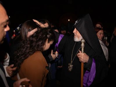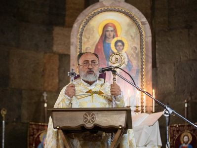 His Grace Bishop Artak, referring to the sacrament of Resurrection in his sermon, specifically mentioned: The words, " He is not here, but is arisen" (Luke 24:6), with which the angel greeted the oil-bearing women who visited Christ's tomb, sound like good news for all of us. However, after the burial of Christ, the disciples' minds, which were in uncertainty, was not able to perceive the joy hidden in these words. To dispel the darkness of uncertainty and despair, after the resurrection, Christ appears in various places to His disciples and to many other people who follow Him”.