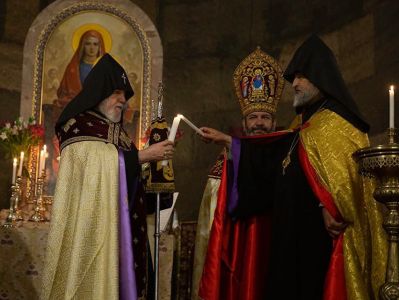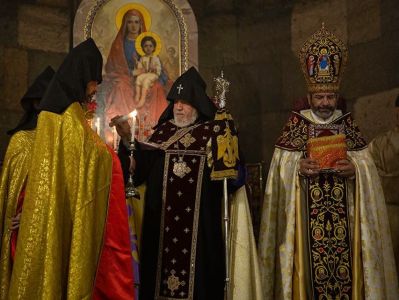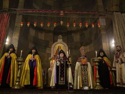 At the conclusion of the Divine Liturgy, the Catholicos of All Armenians ascended the Holy Altar and lit a candle, symbolizing the light of Christ.