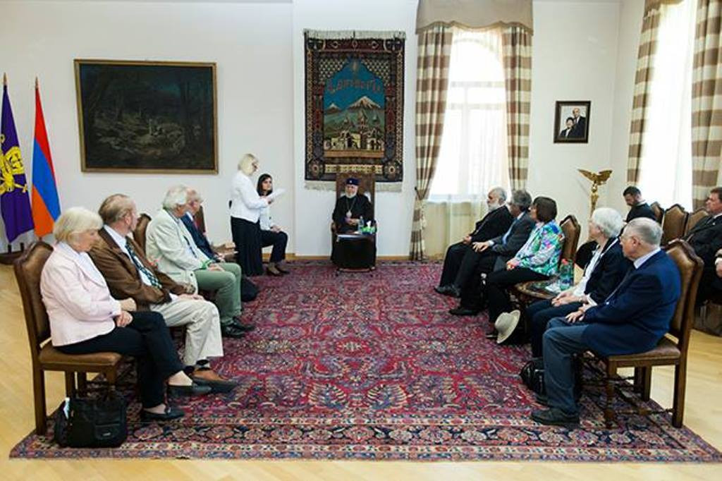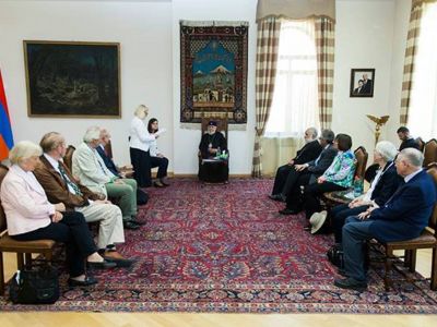 During the meeting, His Holiness answered questions regarding the promotional activities of the Church, Church-state relations, as well as the peaceful coexistence of the followers of different religions. A particular reference was made to the steps taken for the conservation and restoration of the sanctuaries of the Armenian Apostolic Church. In this regard, His Holiness expressed his appreciation to the members of the "Europa Nostra" international organization, for the support provided by the organization for the restoration of Armenian sanctuaries.