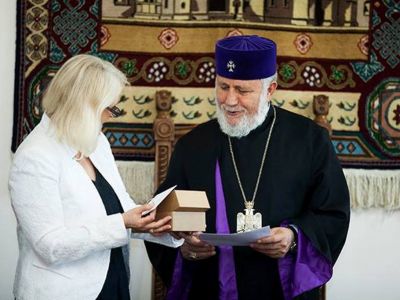 At the beginning of the meeting, Ms. Katharina Wortmann-Zay, theologian and assistant to the Primate of the Trier Diocese, expressed gratitude to His Holiness on behalf of the pilgrims, reflecting on the group’s impressions of Armenia’s churches and historical-cultural monuments. She also read greetings and a message from The Right Reverend Stephan Ackermann, Bishop of Trier; addressed to His Holiness Karekin II.