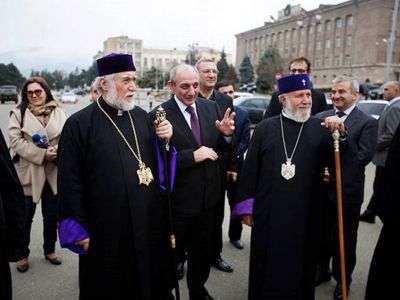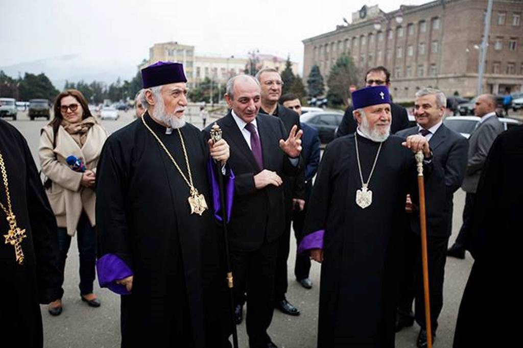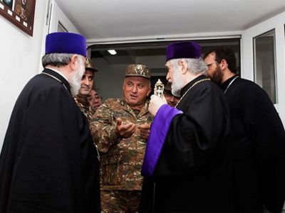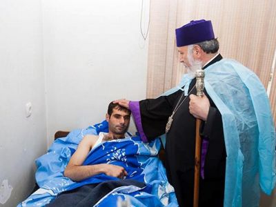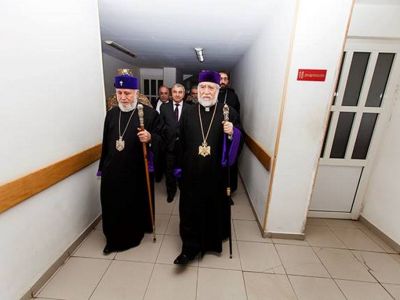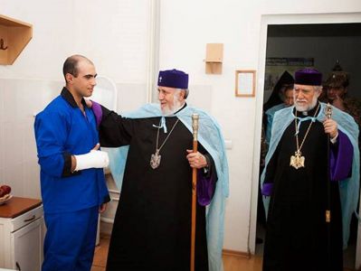 On April 13, His Holiness Karekin II, Supreme Patriarch and Catholicos of All Armenians; and Catholicos of the Great House of Cilicia Aram I, along with Ashot Ghoulyan, Speaker of the National Assembly (NA) of the Nagorno-Karabakh Republic (NKR); visited the Central Military Hospital in Stepanakert.