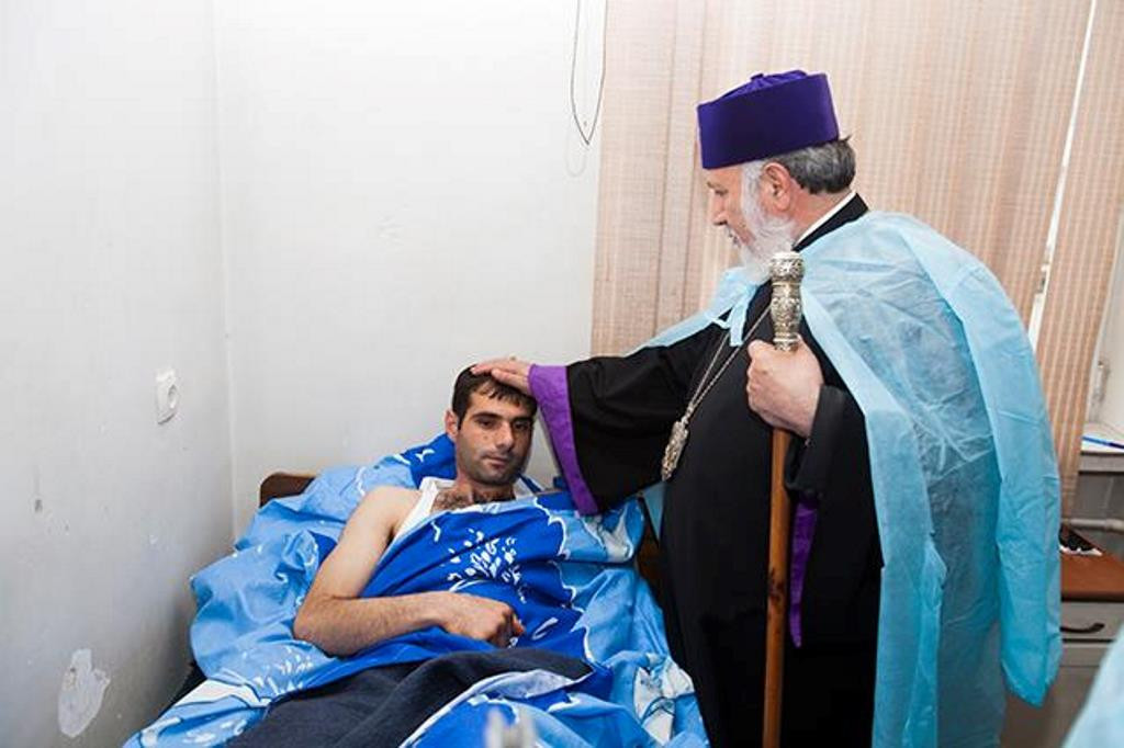The Catholicoi expressed their gratitude to the hospital personnel for their dedication and care and wished a speedy recovery to the brave soldiers.