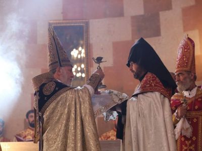 At the conclusion, His Holiness Karekin II presided over a Divine Liturgy in the newly-built church.