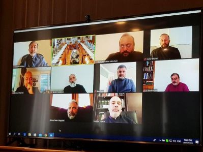 Conveying His Pontifical Blessings and best wishes to the clergy representing the Armenian Church structures in Europe, the Armenian Pontiff emphasized the importance of holding such meetings regularly. His Holiness welcomed the opportunity of online connection through the modern technologies to the Mother See of Holy Etchmiadzin and the Armenian Pontiff, expressing confidence that it will greatly contribute to more effective implementation of the spiritual mission, discussions of issues concerning the Church and exchange of experience. The Catholicos of All Armenians noted the usefulness of organizing various educational programs to deepen the knowledge of the diocesan administrators and clergymen concerning the traditions and rules of the Armenian Church, and the Brotherhood members and staff of the Mother See will contribute to its implementation.
