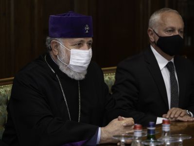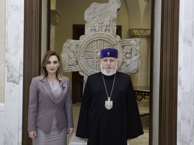 On April 22, in the Mother See of Holy Etchmiadzin, His Holiness Karekin II, Supreme Patriarch and Catholicos of All Armenians; hosted Mrs. Vartine Ohanian, Lebanon's Minister of Youth and Sports; accompanied by Mrs. Maya Dagher, Ambassador Extraordinary and Plenipotentiary of the Republic of Lebanon to the Republic of Armenia, and Mr. Vahagn Atabekyan, RA Ambassador Extraordinary and Plenipotentiary to the Republic of Lebanon.At the meeting, Mrs. Ohanian conveyed the greetings and best wishes of the President of Lebanon Mr. Michel Aoun to His Holiness; informing that she has arrived in Armenia as a special representative of the Lebanese President, to participate in the Commemoration events of the Armenian Genocide on April 24.