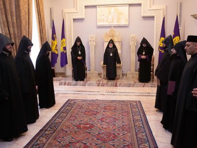 On February 5, His Holiness Karekin II, Supreme Patriarch and Catholicos of All Armenians; hosted the eleven newly ordained priests who have received the degree of priesthood the previous day in the St. Gregory the Illuminator Mother Church in Yerevan. They were accompanied by His Grace Bishop Moushegh Babayan, Grand Sacristan of the Mother See of Holy Etchmiadzin and His Grace Bishop Oshaka Gyulgyulyan, Primate of the Armenian Diocese of Iraq.
