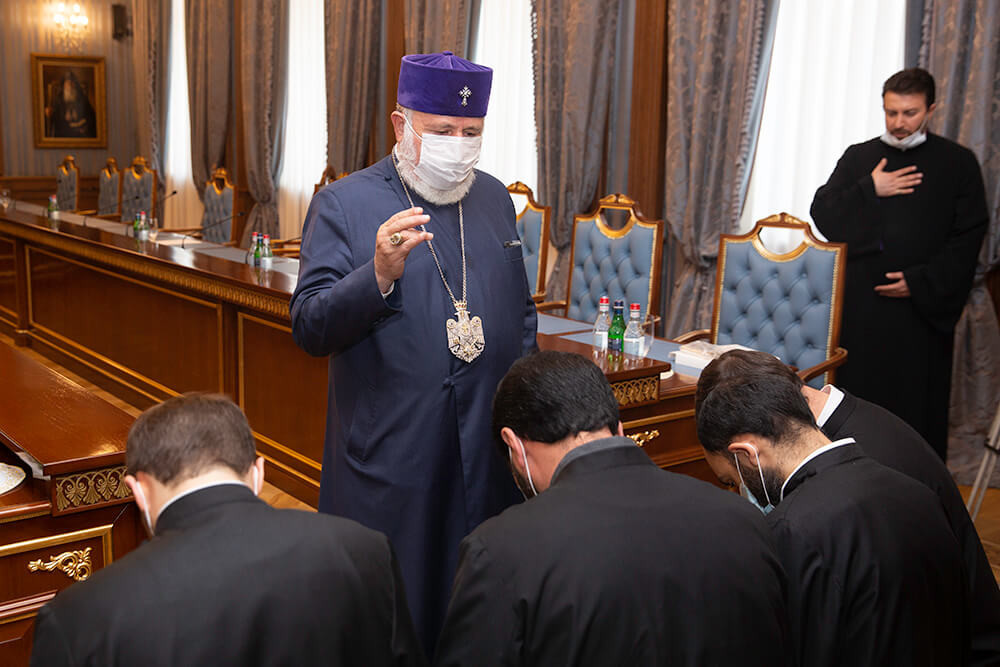 At the meeting, His Holiness expressed his appreciation to His Grace Bishop Arshak and His Grace Bishop Hovnan for contributing to the preparation and ordination of the clergy.