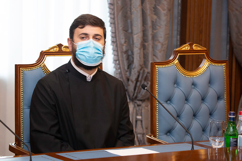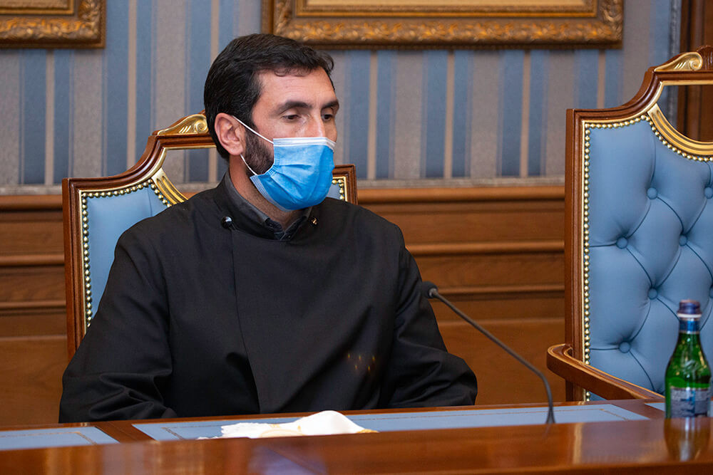 His Grace Bishop Hovnan Hakobyan, Grand Sacristan of the Mother See; introduced the newly ordained priests to His Holiness, assuring that they are ready to bring their pastoral service to the Armenian Church. In his turn, His Grace Bishop Arshak Khachatrian, Chancellor of the Mother See of Holy Etchmiadzin; who had ordained the priests; expressing his gratitude to His Holiness for entertaining the opportunity to ordain the priests; prayed to Almighty God that the newly ordained reverend fathers will successfully implement their sacred mission under any condition.