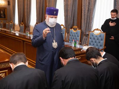 Then, the Pontiff of All Armenians extended His Blessings to the Priests on the occasion of the start of their pastoral service, conveying His Pontifical message and exhortation. His Holiness emphasized, that the newly ordained priests start their spiritual service in difficult times for the Armenian people, when all Armenians carry the impact of heavy consequences of the war. According to His Holiness, in such conditions, more than ever, the fully devoted service of the Armenian clergy is important, in order to inspire faith and hope to the Armenian sons passing through these difficult trials; to strengthen their spirit of hopefulness and awareness of a new and prosperous life.