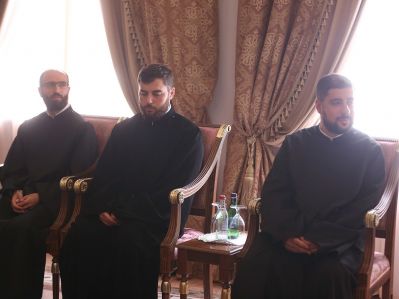 On August 28, His Holiness Karekin II, Supreme Patriarch and Catholicos of All Armenians; hosted the three newly ordained priests who have received the degree of priesthood on July 16 and who completed their traditional 40-day seclusion period of fasting in the Mother See of Holy Etchmiadzin. They were accompanied by His Grace Bishop Moushegh Babayan, Grand Sacristan of the Mother See and His Grace Bishop Vahan Hovhannisyan, Director of the Mother See "Garegin I" educational center.