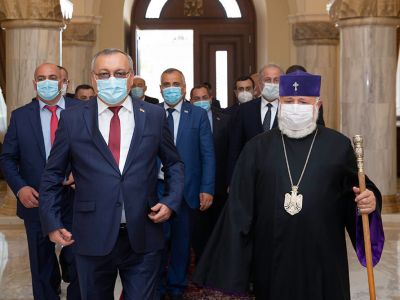 Welcoming the delegation of the National Assembly of Artsakh Republic being in Armenia on an official visit, the Pontiff of All Armenians conveyed His congratulations, Blessings and best wishes to the deputies. His Holiness emphasized that his soul is filled with special joy and warmth when he visits Artsakh witnessing the courageous spirit and unbreakable will of the Armenians in Artsakh to forge the independent, secure and prosperous life of Artsakh. The Armenian Pontiff conveyed his respect to the blessed memory of the Armenian sons through the efforts and bloodshed of whom the Independence of Artsakh was achieved.