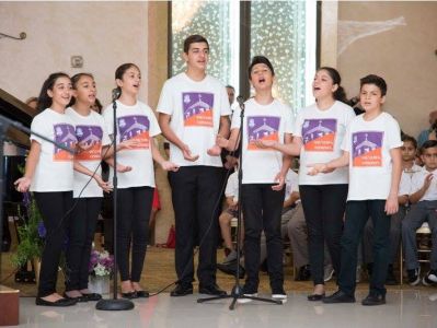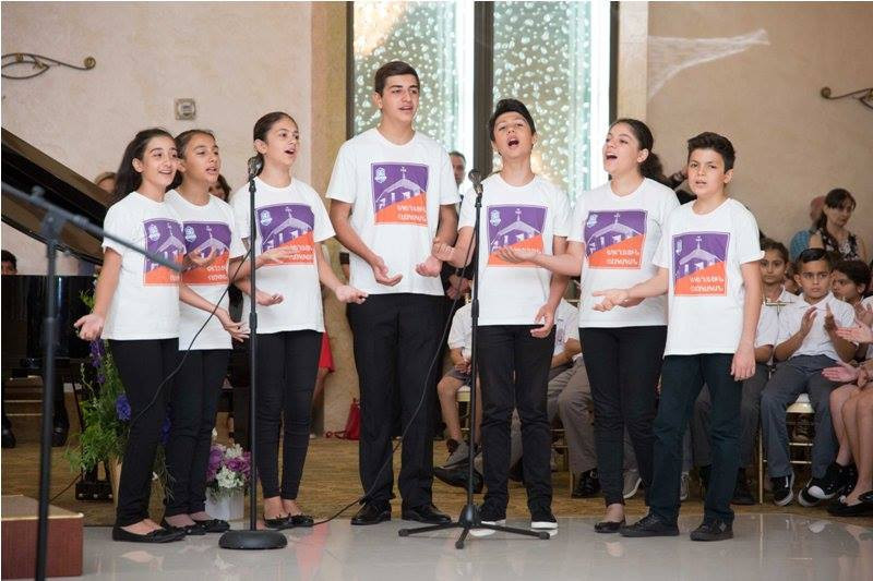 The meeting began with the singing of the Lord's Prayer. Deacon Hovhannes Gumruyan, Director of the "Little Angels" Saturday School, gave opening remarks. The students performed songs and played piano pieces. The pupils of the Armen Tigranyan Music School, arrived from Yerevan, who added to the events of the 90th anniversary of the establishment of the Western Diocese of the Armenian Church of North America with their beautiful and skillfully presented songs, also performing songs by Armenian composers during the meeting.