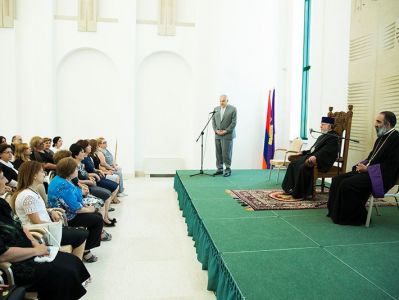 Highlighting the mission of the Armenian school in the national life, the Catholicos of All Armenians painfully noted that today, Armenian education in the Diaspora is on the decline. His Holiness stressed that spirit of nationalism is transferred through the Armenian school, where the Armenian child is created and acquires the knowledge of sacred national values, history, and the prominent Armenians, and the insight that contributes to the strengthening of national identity and consciousness, thereby guaranteeing the further involvement of national life.