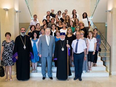 His Holiness informed the teachers that during his various pontifical visits he discussed this worrying issue with the Diocesan primates and clergy, stressing the need to have Armenian schools at the side of the churches- to keep the Armenian identity secure. The Catholicos announced that a similar type of training program will be also launched in the Mother See next year, to support the pedagogues operating under the auspices of the national educational institutions in the Diaspora and the Armenian Church.