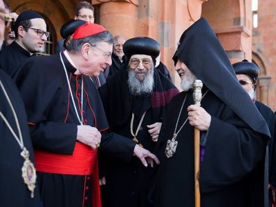 Then, on behalf of the Committee, His Holiness Cardinal Kurt Koch, Chairman of the Christian Councils High Priesthood Council (Catholic Church) and Metropolitan Anba Bishoy of the Coptic Orthodox Church welcomed the Catholicos of All Armenians and conveyed information about the activity of the Committee. They also expressed their gratitude to His Holiness for the warm hospitality.