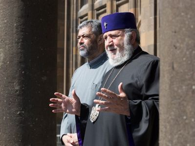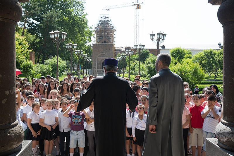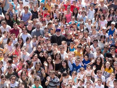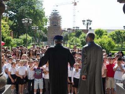 His Holiness Karekin II urged the Sunday Scool children to grow in God's love, become worthy children of the nation and live through God's commandments. “Being under the auspices of the Church means to be both a patriotic and a God-loving person. These two concepts are closely interconnected. These are the conceptions of our history, which have become one whole. … Patriotism means to love the nation-generated culture, the path of the nation, its struggles, its entire value system, and in our case all that is mixed with the Christian faith and sense of godliness”, stated His Holiness.