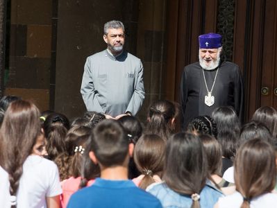 Then, on the occasion of the initiative, His Holiness Karekin II expressed his joy conveying his love and blessings to the children, teenagers and teachers.